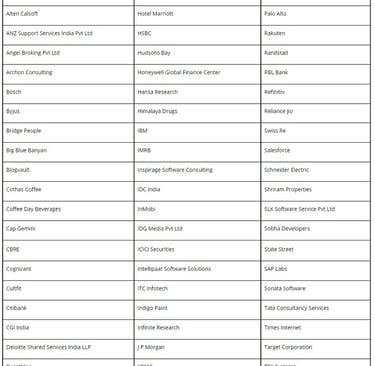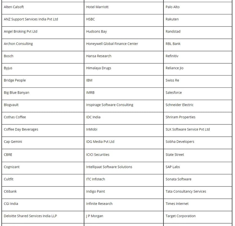 Akamai Amazon Angel Broking ANZ Birla SunLife Bosch Ltd Grant Thornton HONEYWELL ICICI Prudential ICICI Securities IDC Motilal Oswal Oracle Financial Peepal Software pwc